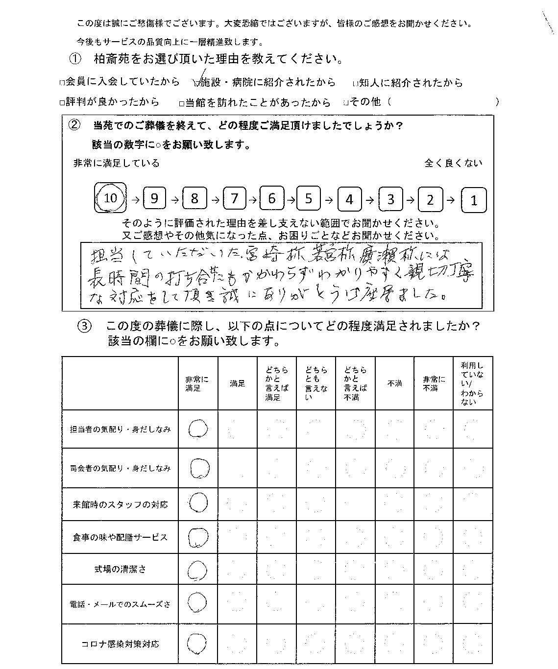 柏市しいの木台M様(柏斎苑 高柳西口ホール) 担当していただいた、宮崎様、若宮様、廣瀬様には長時間の打合せにもかかわらず、わかりやすく親切丁寧な対応をして頂き、誠にありがとう御座いました。 投稿の詳細を見る